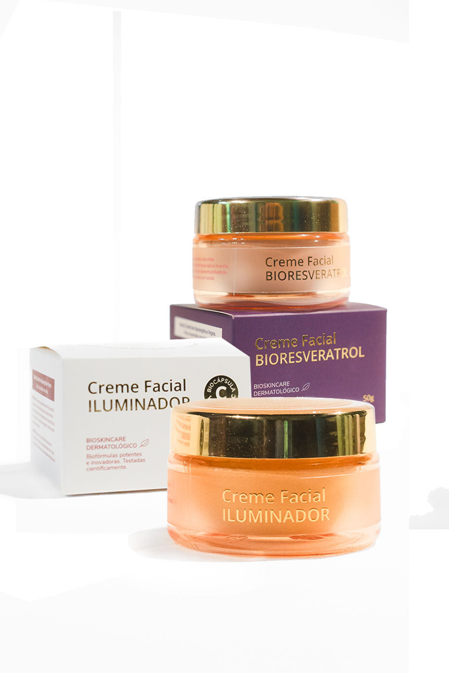 Uma dupla pensada para entregar regeneração + luminosidade + ação pro-aging em uma rotina simples (dia e noite). O kit une o poder do Creme Iluminador para ajudar a uniformizar o tom, restaurar o viço e tratamento para manchas/olheiras, com o Creme Bioresveratrol, que entra como tratamento antioxidante e regenerador para uma pele com aparência mais firme, nutrida e saudável.